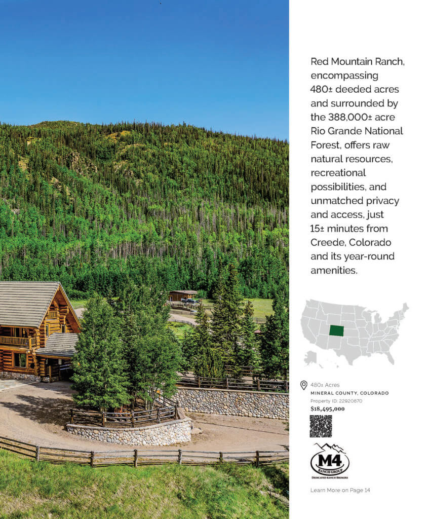 Nestled in Mineral County and surrounded by the vast Rio Grande National Forest, Red Mountain Ranch sits on 480± deeded acres of pristine, private landscape.